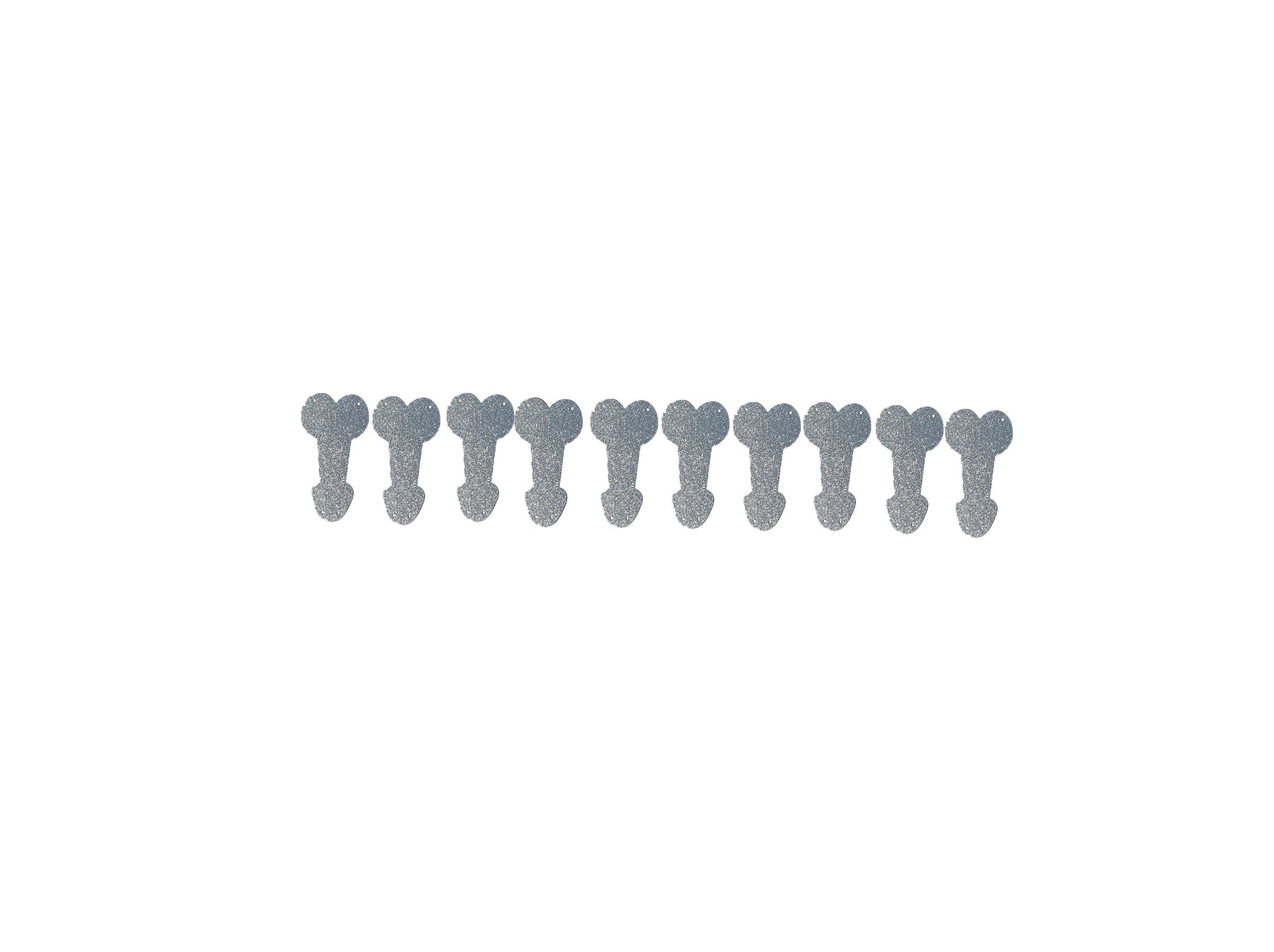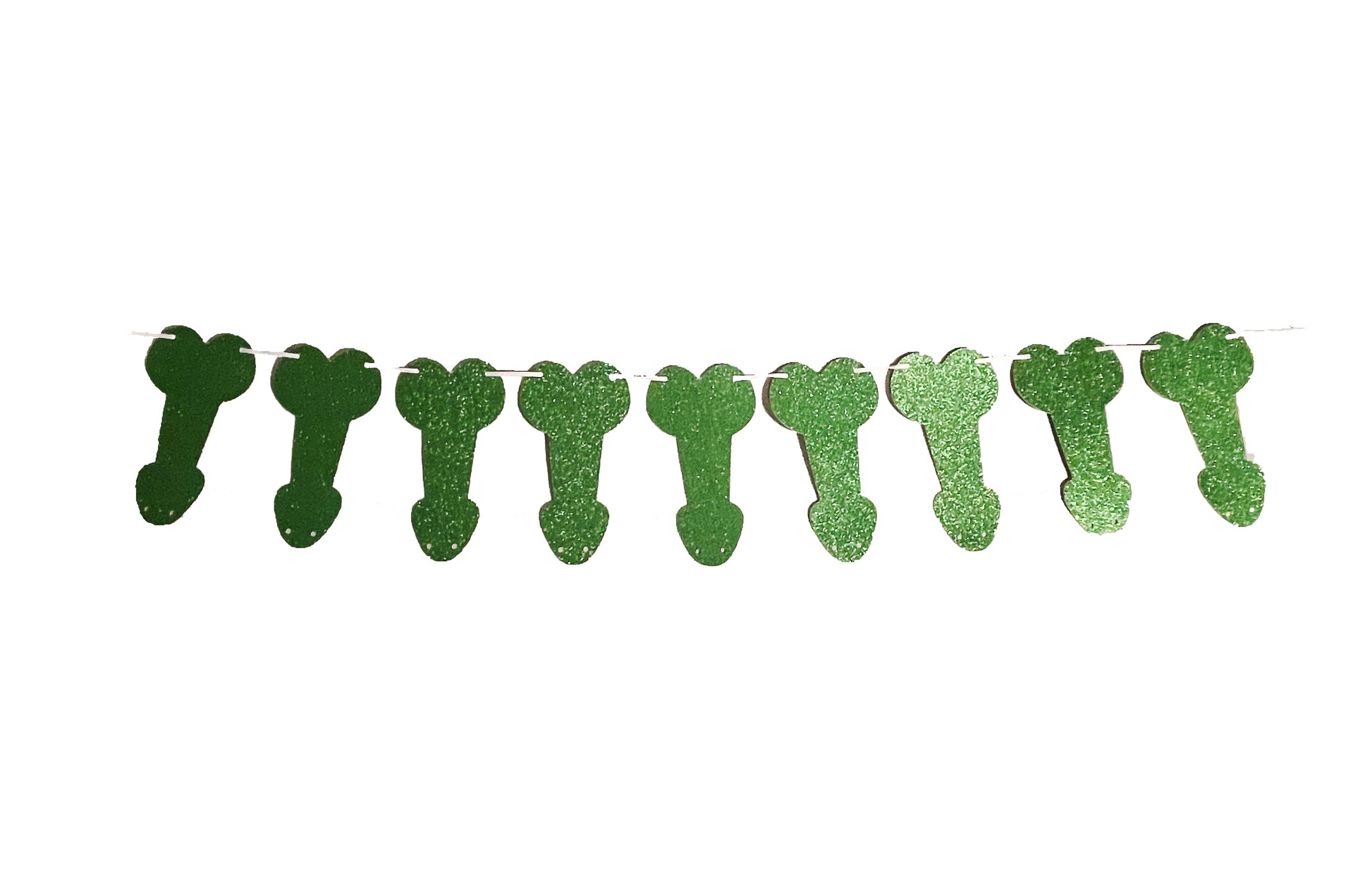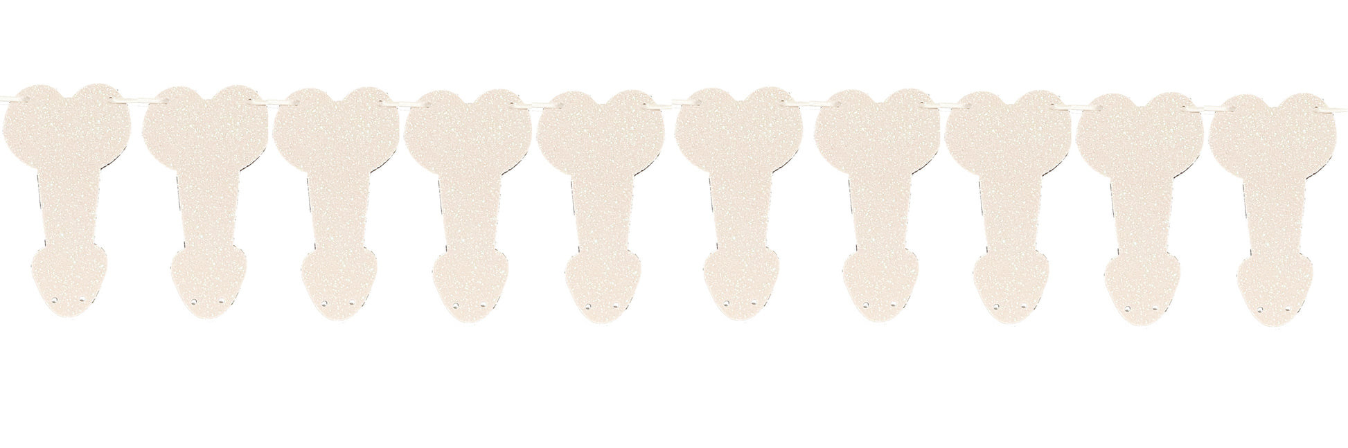 Our Glitter Dick penis banners are the perfect addition to your bachelorette room decor. Each glitter cardstock peckers is 5 1/2" by 3 1/2." There are 10 peckers per banner. The banner will measure 4 1/2 to 5 feet when you hang it and space out the dicks. You can change the direction of the penises in the banner by using the punched-out holes in either the top or bottom of these sparkly peckers. The peckers are hung on a satin ribbon and it is already pre-strung and ready to hang. This banner will add just a bit of naughty color to your hotel room or house party. For extra party fun add matching Glitter Dick Straws or Confetti!