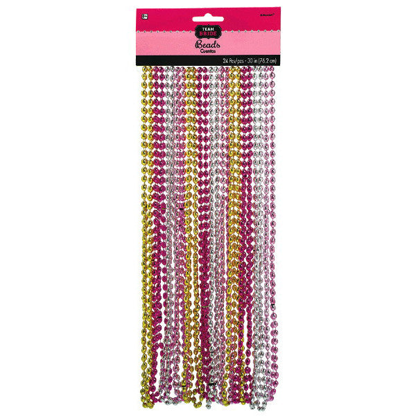 24 pretty silver, gold and pink metallic beads come in a 30 inch length.